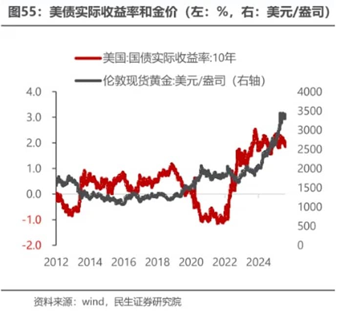 按过去的规律,黄金属于无息资产,当美债实际利率走高时,投资者会抛售黄金转投美债。但 2022 年俄乌战争后,即便美债实际利率持续高位,金价依旧一路狂飙。