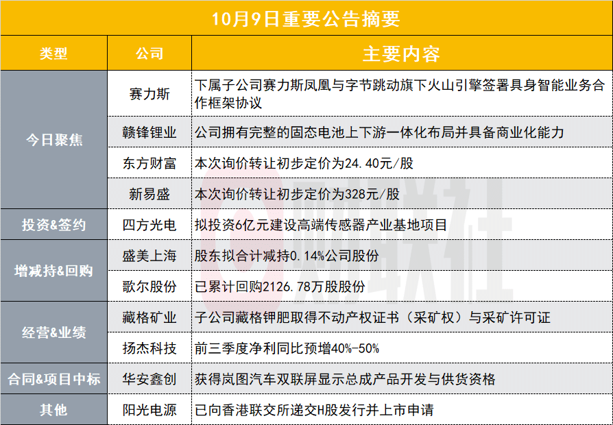 赛力斯 (601127.SH) 公告称,公司下属子公司重庆凤凰技术有限公司与北京火山引擎科技有限公司于 2025 年 10 月 9 日签署 《具身智能业务合作框架协议》。双方将围绕 「面向多模态云边协同的智能机器人决策、控制与人机增强技术」 项目协同攻关,构建 「技术研发——场景验证」 闭环机制,共筑技术底座与协作基础。双方聚焦汽车产业生态数智化升级需求,打造 「技术+场景」 融合新模式,为汽车产业全面赋能。火山引擎发挥在语言、视觉、多模态及人工智能通用模型等领域的技术优势,提供智能算法与算力支撑;赛力斯发挥产业优势推动人工智能的产业化应用落地,实现 AI+具身智能有情感、更智慧、更安全、可信赖的移动智能体和生活伙伴。该协议的签署对公司 2025 年度财务状况及经营成果不会产生重大影响。小财注:火山引擎是字节跳动旗下的云与 AI 服务平台。