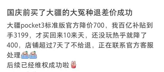 自大疆 2025 年 10 月初预告降价以来,社交媒体上涌现出大量 「维权」 声音,不少刚下单的消费者自嘲成了 「大冤种」。