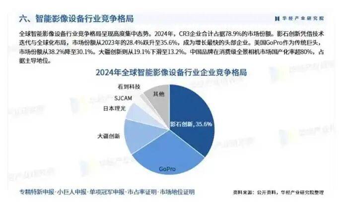 而分流这部分市场份额的,正是影石创新这类专业级竞争对手。同期内,其全球市场份额从 28.4% 提升至 35.6%。