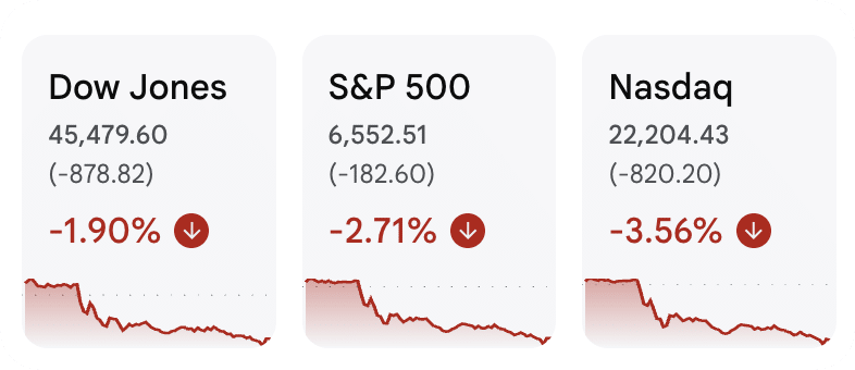 截至收盘,纳指暴跌 3.56%,标普 500 大跌 2.7%,道指也下挫近 2%。标普 500 直接 「一口吐回」 了过去十多天的所有涨幅,市场抛售潮席卷所有板块,恐慌情绪被彻底点燃。