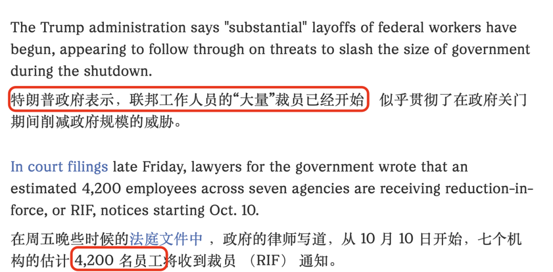 然而,真正将市场恐慌推向高潮的是白宫预算办公室 (OMB) 主任 Russell Vought 稍后在社交媒体上发布的一条重磅消息:特朗普 Z 府已开始在 Z 府停摆期间实施大规模的永久性裁员 (RIF,即 「减少人力」)。