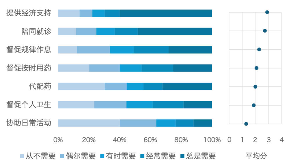 ▲不同照顾任务的频率,出自 《中国精神障碍人士照顾者现况及需求调查报告》