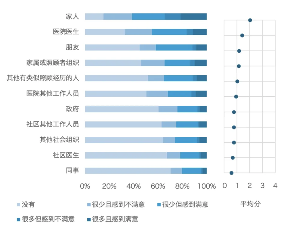 照顾者能获取的社会支持,却普遍匮乏,有 72.9% 的照顾者获得的社会支持差。