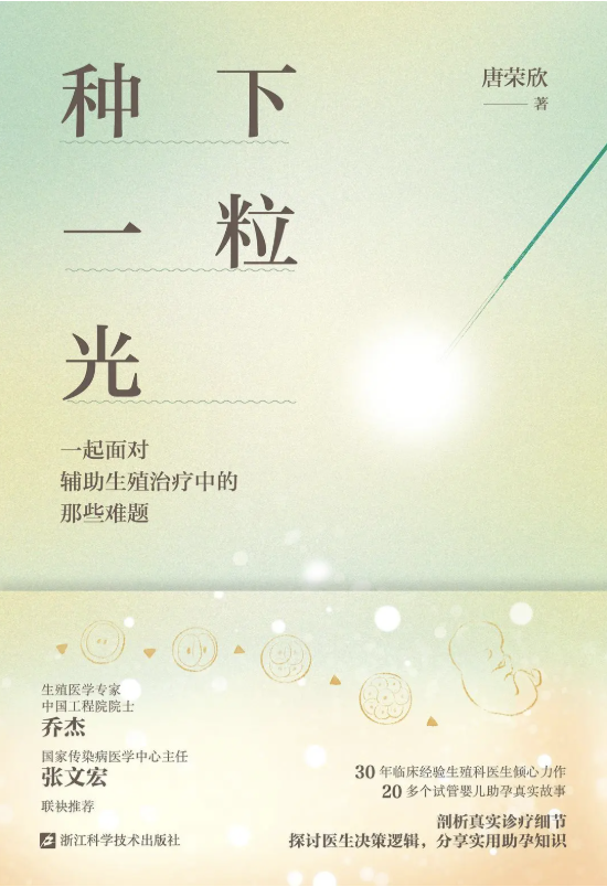 从医 30 年,研究不孕症 20 年,唐荣欣写下了 《种下一粒光:一起面对辅助生殖治疗中的那些难题》 一书,科普不孕症和试管婴儿相关的知识,也记录一个生殖科临床医生和中年女性眼中,无数家庭求孕的故事。