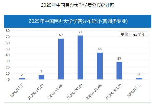 ABC 排名统计发现,中国民办大学普通类专业学费最高为 149985 元,最低为 6000 元,中位数为 22500 元,同比增长 1500 元,另外平均学费达 23468 元,同比增长 879 元。