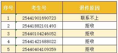 同月,广东女子职业技术学院也发布通知,24 名考生的录取通知书被退回学校,退件原因为联系不上、拒收。
