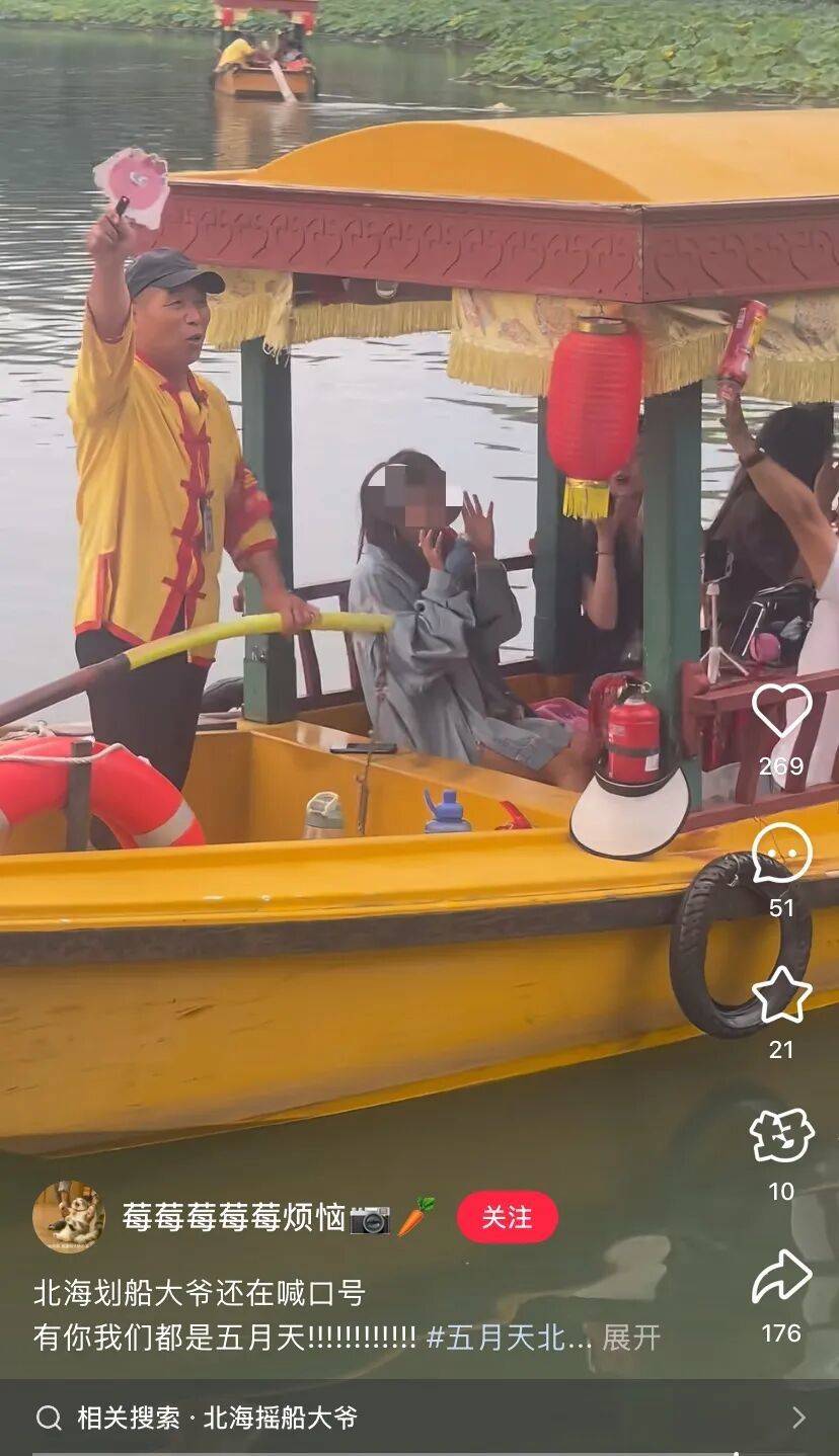 除了在著名景点投放五月天的 IP 装置 「五球」(五月天乐团 25 周年巡回演唱会的标志性艺术装置,五个色彩不同的球代表五个成员),北京还为五月天粉丝准备了打卡路线。在 「痛城」 的氛围之下,粉丝成为城市文旅宣传的自来水,一位歌迷拍摄了北海开船大爷大喊 「我们是五月天」 并唱起 《OAOA》 的视频,这些 UGC 内容借助鲜活的人,让北京文旅呈现出更有趣的一面。