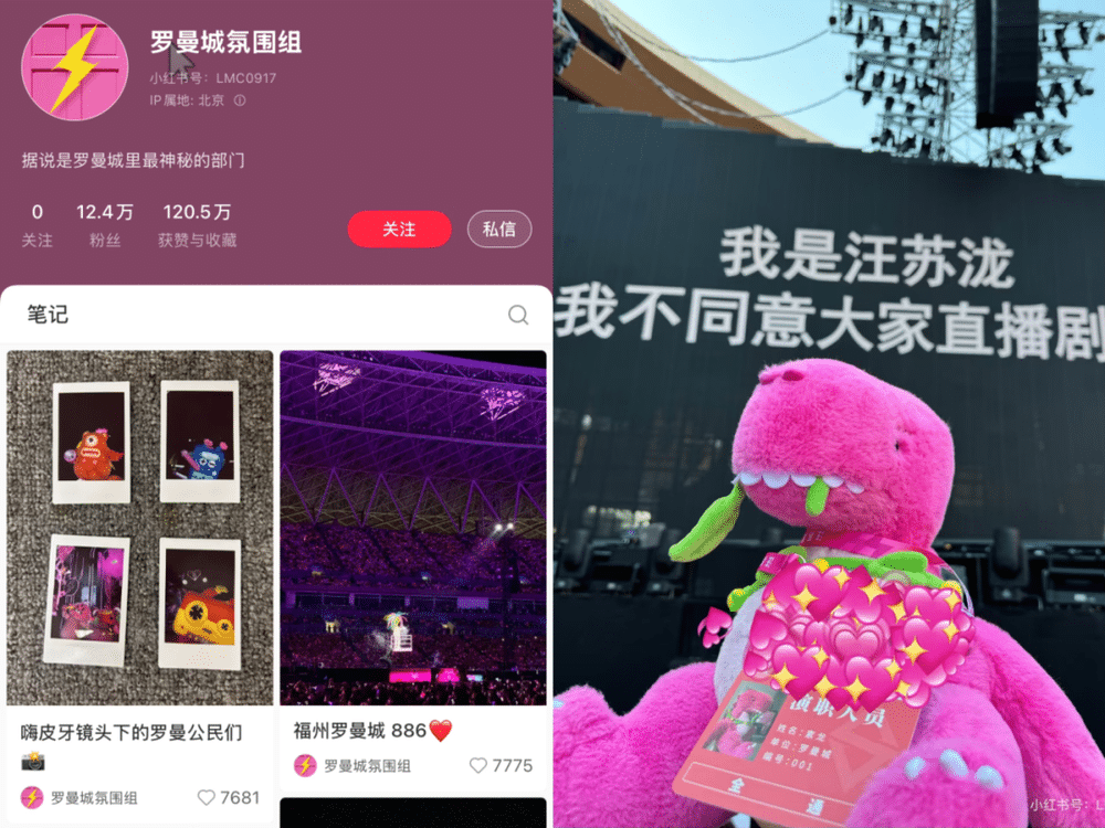 汪苏泷的 「罗曼城」 是另一个高度 IP 化的演唱会 IP,这一概念来自其专辑 《21 世纪罗曼史》,并提炼出汪苏泷的专属 IP 形象 「素龙」。在粉丝眼中,罗曼城是一个虚拟城市,而演唱会是进入罗曼城的入口,每个进入演唱会的人会化身小怪物,在这个充满快乐和幸福的梦想之城中与城主一同狂欢。演唱会 「充电」 结束后,又变成大人去独自抵挡世界和苦难。
