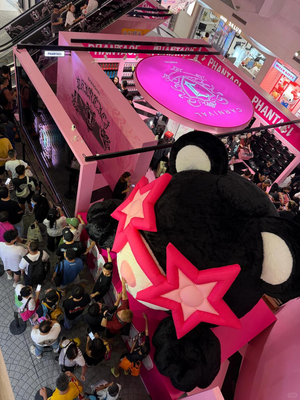 在 10 月 9、10、11 日为期三天的周杰伦 「嘉年华」 演唱会之前,从 9 月开始,上海就已化身为周杰伦 「痛城」,粉色已然成为城市主色调之一。豆豆眼、浓眉、斜刘海的周杰伦卡通装置,出现在城市多个地点。PHANTACI 快闪店所在的外滩金融中心,不断循环播放着周杰伦的音乐。