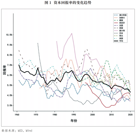 企业是经济活动中承担风险的主体,任何风险必须伴随着更高回报才能吸引投资者。因此,企业股权这样的风险资产在均衡状态下,其回报率必然高于低风险资产和社会的平均回报。这使得企业的资本回报率在中长期看一定高于借贷利率和经济增速。《21 世纪资本论》 中,皮凯蒂收集了世界主要经济体几百年的数据,结果表明资本回报率平均高于经济增长的数字是 4%。