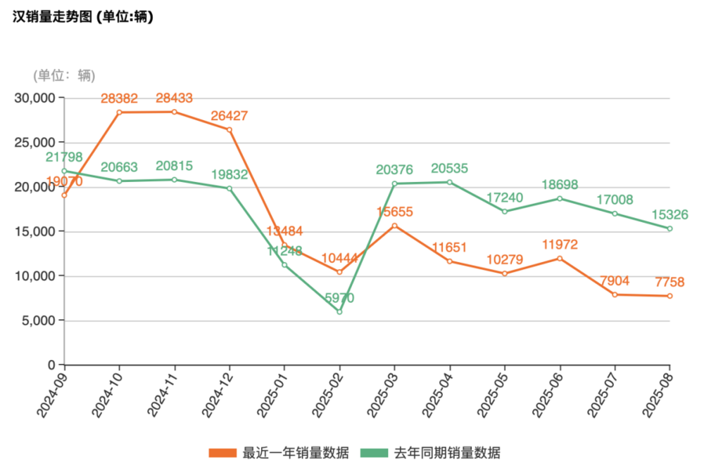 更严重的是,降价带来的品牌形象下沉,正在侵蚀比亚迪的品牌价值。海豹、汉一度是比亚迪冲击高端市场的主力车型,售价站上 20 万元区间,但如今已经成为网约车热门车型,让不少潜在用户望而却步。8 月,汉全系销量 7758 辆,同比下降 49.38%,而巅峰期,汉月销量站上过 3 万+。