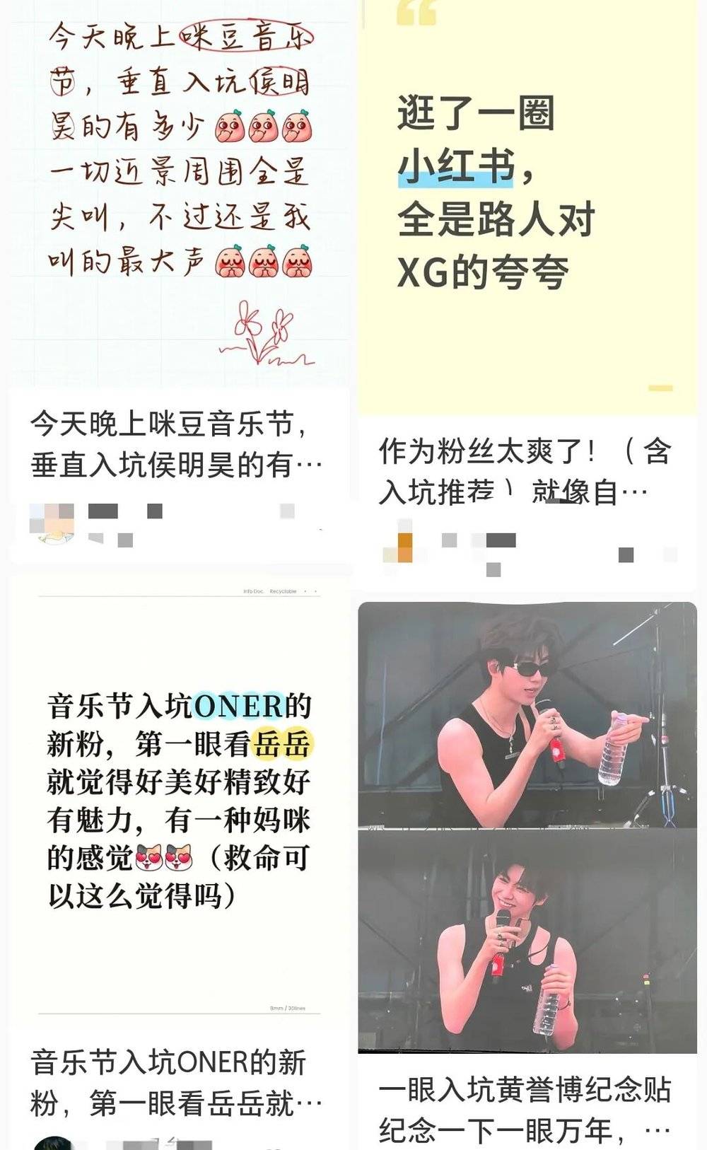 再如黄子弘凡、王翊恩、井迪& 井胧等同样拥有不俗音乐基础,但因通过影视、综艺、短视频神曲等非专业身份得以 「飞升」 成功的年轻艺人,也借音乐节舞台打破刻板印象,以专业音乐人身份被熟知。当然,类似于 ONER、XG 等天然被冠以 「偶像歧视」 色彩的年轻偶像艺人,也不乏因音乐节舞台逆转口碑。