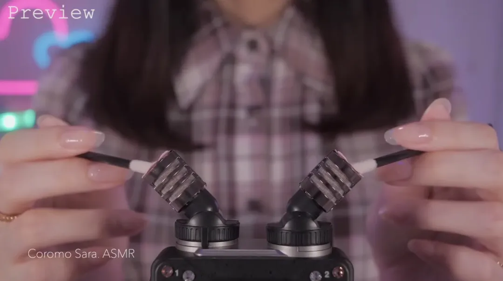 早期 ASMR 视频,创作者使用棉签等工具摩擦话筒,达到 「精神振奋」 的效果。(图/视频截图)