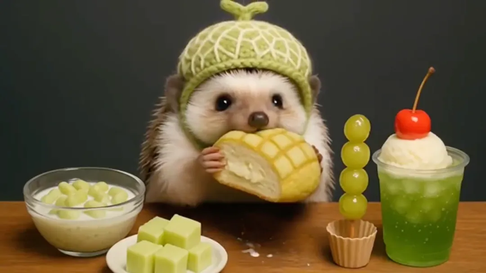AI 生成的各类萌宠治愈视频。(图/视频软件截图)