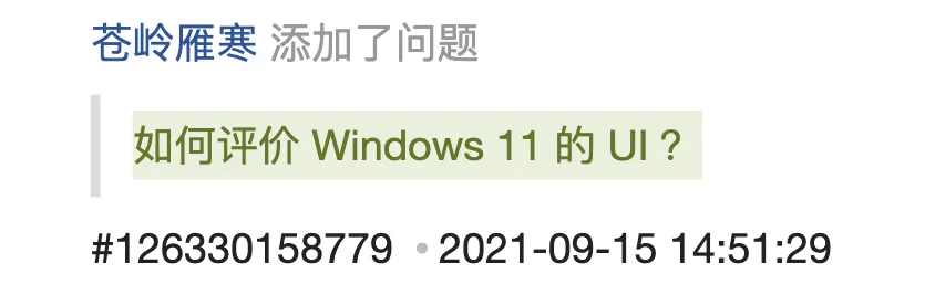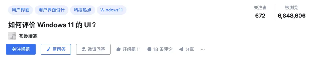 像知乎上有个热门问题叫 「如何评价 Windows 11 的 UI」,它在 2021 年 9 月就提出了。