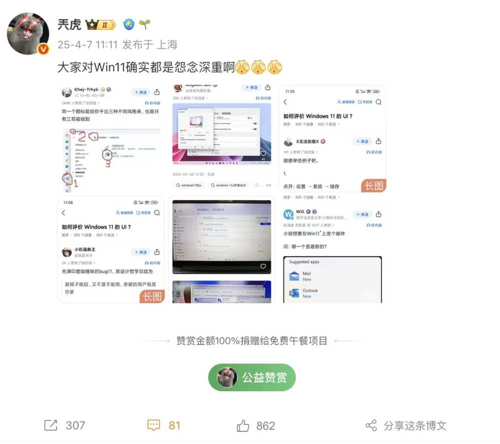 我是想说用户吐槽系统的场景,对微软来说早就见怪不怪了。