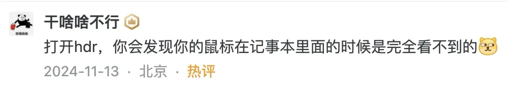 类似的 「消失术」 还出现在鼠标上,只要在 HDR 模式下,鼠标就和记事本融为一体,根本找不到。