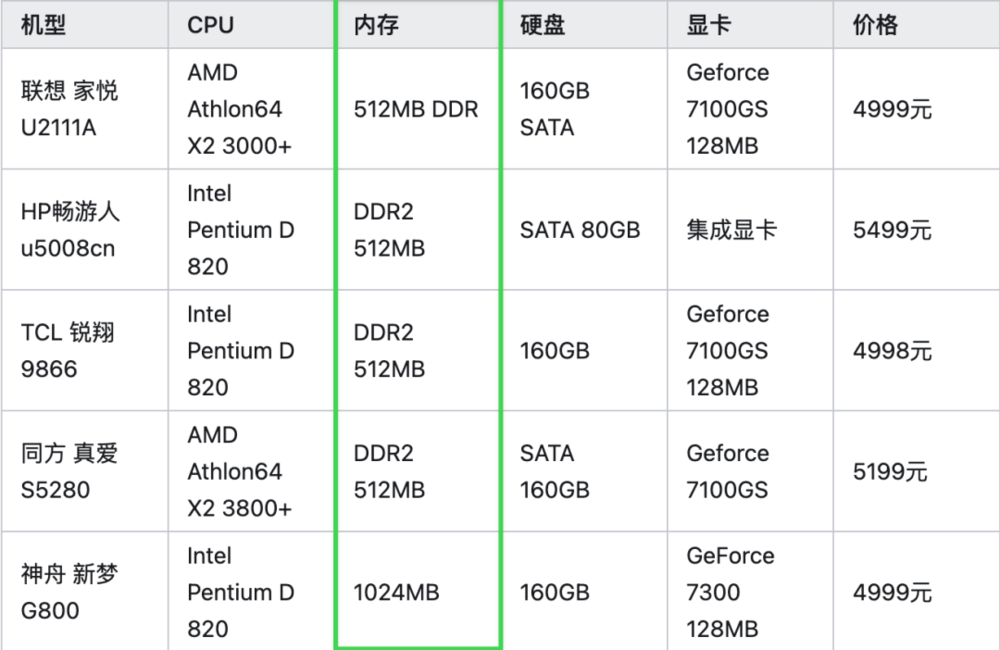 当时 (2007 年)5000 价位主流机器的标配内存,一般就是 512M 或者 1G。