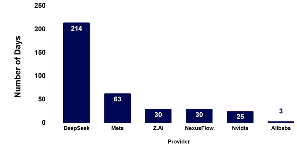 在开源领域,报告观察到:中国正取代 Meta,成为全球开放权重生态系统的新领导者。