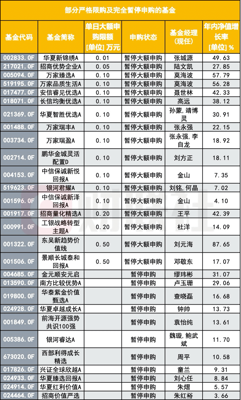 尤其在主动权益类基金领域,一类被称为 「橱窗基金」 的现象型产品开始引发广泛关注:它们并非完全封闭,但通过设置极低的申购额度,或干脆暂停所有新增资金的流入,构建出一道难以逾越的 「准入门槛」。