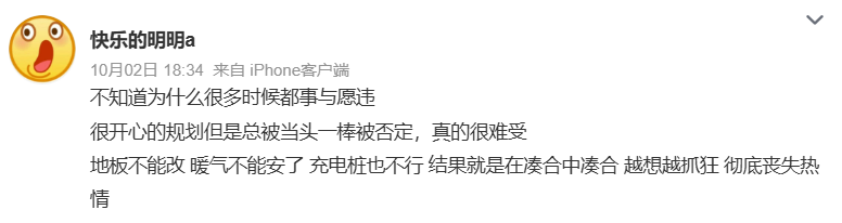 「买了车,却没法在自家车位上充电,还得顶风冒雪去外面排共享充电桩,这和没买车有什么区别?」