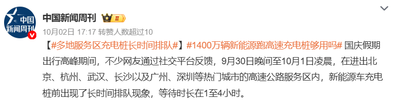 「上过高速服务区,就知道油车和电车的差别了,一边随时走人,一边排队半天,等电的时候,有的人都吃上火锅了,好家伙,还真是 『生活在路上』。」