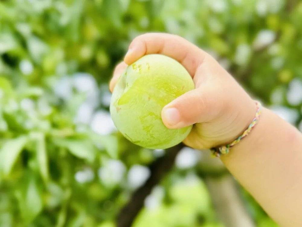 图丨窝窝和孩子在公寓附近采摘