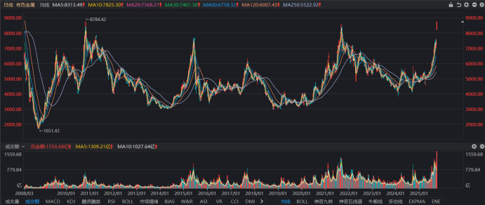 从量能数据上看,有色金属板块近期为活跃资金重点关注方向,其今日板块成交总额达 2211.45 亿元,较上一交易日放量近 200 亿元,同时也为历史最高纪录。具体个股方面,累计共有 24 股于月内 3 个交易日期间录得年内最高成交额纪录,其中,金力永磁、驰宏锌锗、兴业银锡、山东黄金、白银有色、鹏欣资源、正海磁材 7 股今日成交额创年内新高。