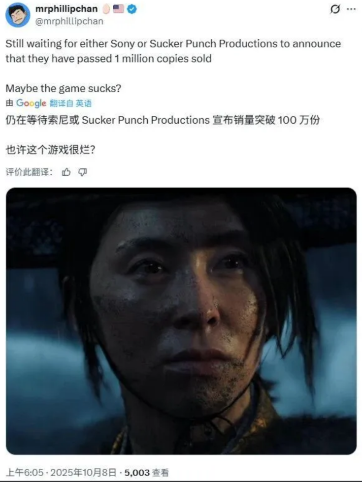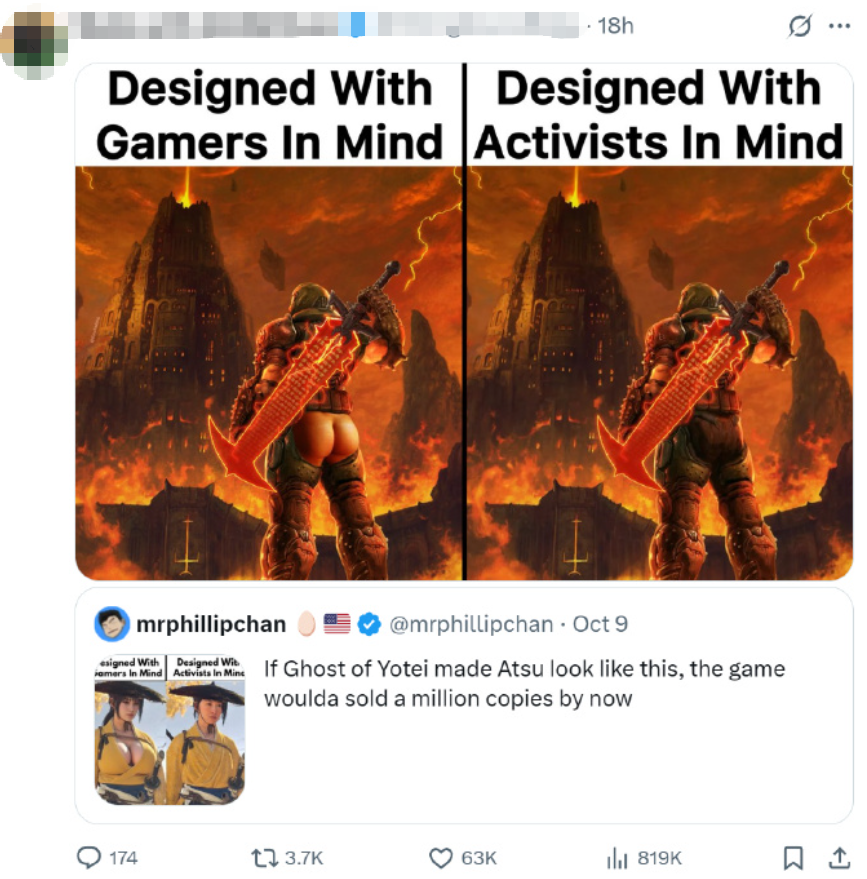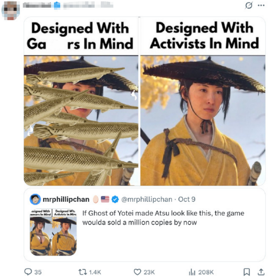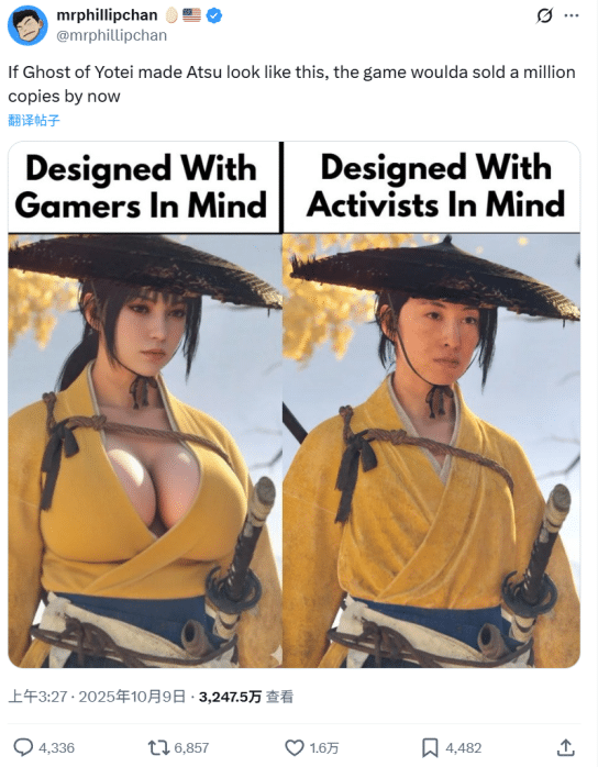 这种执念在我看来是有些让人费解的——明明前作 《对马岛之魂》 的男主角镜井仁,也不是个多么美型的角色,为何会要求他们在一个续作中,修改以往定下的美学风格?但从这条推文三千多万的阅读和四千多条的评论来看,这的确是网上玩家们最关心的核心问题。