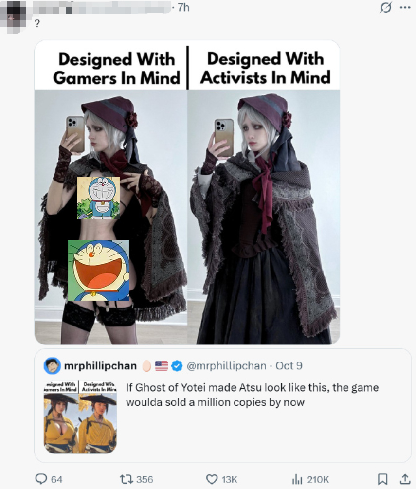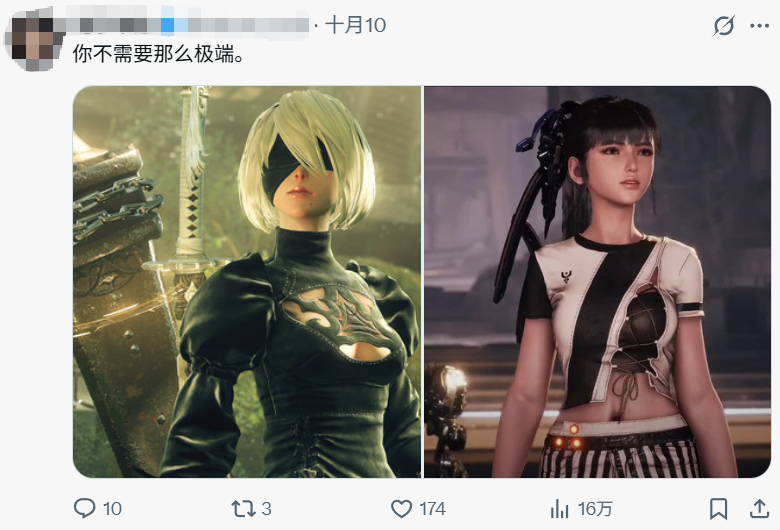 对 「笃」 长相的不满,其实在游戏刚发售时,就已经逐渐在社区中酝酿。由于互联网的发达,国内国外现在都已经进入了一个 「反 DEI」 情绪高涨的版本——在他们看来,「笃」 被做成这个没胸、没屁股,脸像 「东北雨姐」 的模样,毫无疑问是在向 DEI 献媚。