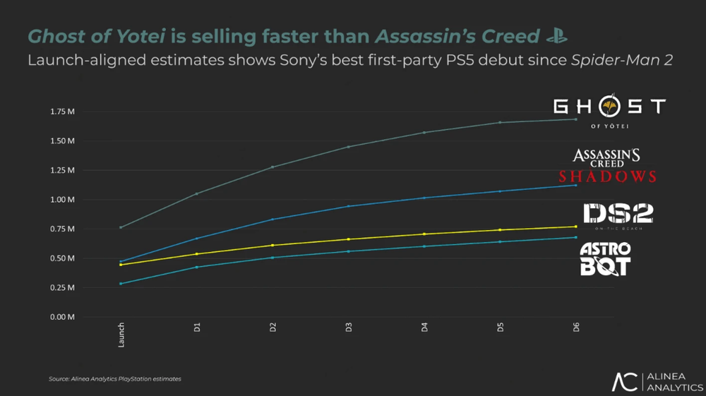 但这件事儿,最终还是有个比较戏剧化的结尾。就在 「mrphillipchan」 发了个帖子,说这么改能让 《羊蹄山之魂》 卖超过 100 万的第二天。许多海外媒体就发布了新闻,引用了第三方统计机构 Alinea Analytics 公布的数据,称 《羊蹄山之魂》 现在销量已然突破 160 万份,实际出货量达到 200 万份。