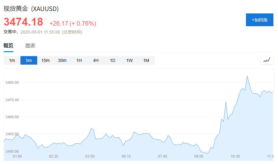这轮涨势与黄金、铂金和钯金等其他贵金属的走势同步,黄金也创下自 4 月历史高点以来的新高。现货黄金日内涨幅一度超 1%,报 3485.89 美元/盎司。