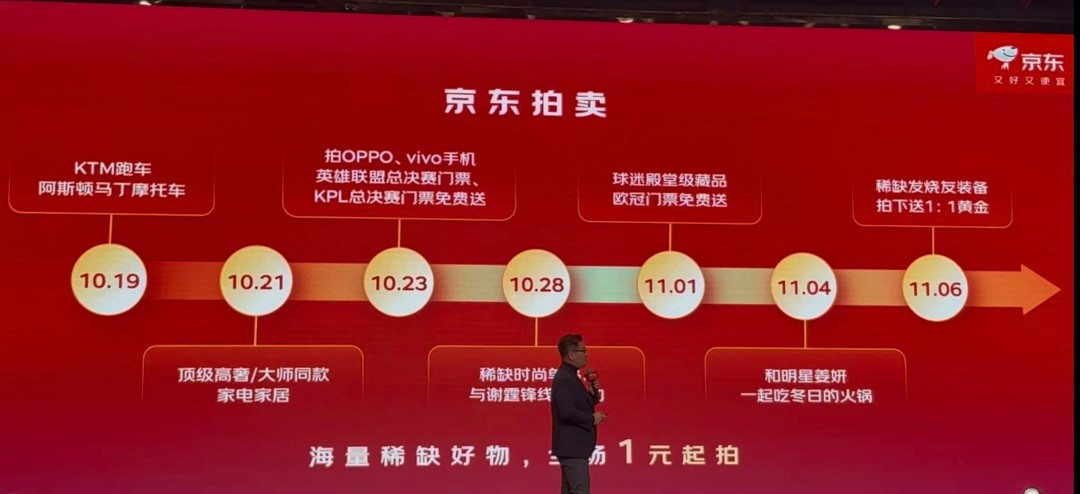 7、京东拍卖频道将为消费者带来国内仅有 1 台的阿斯顿马丁摩托车、多款欧冠球星亲签球衣、百斤重的超大生鲜等稀缺好物,统统 1 元起拍。