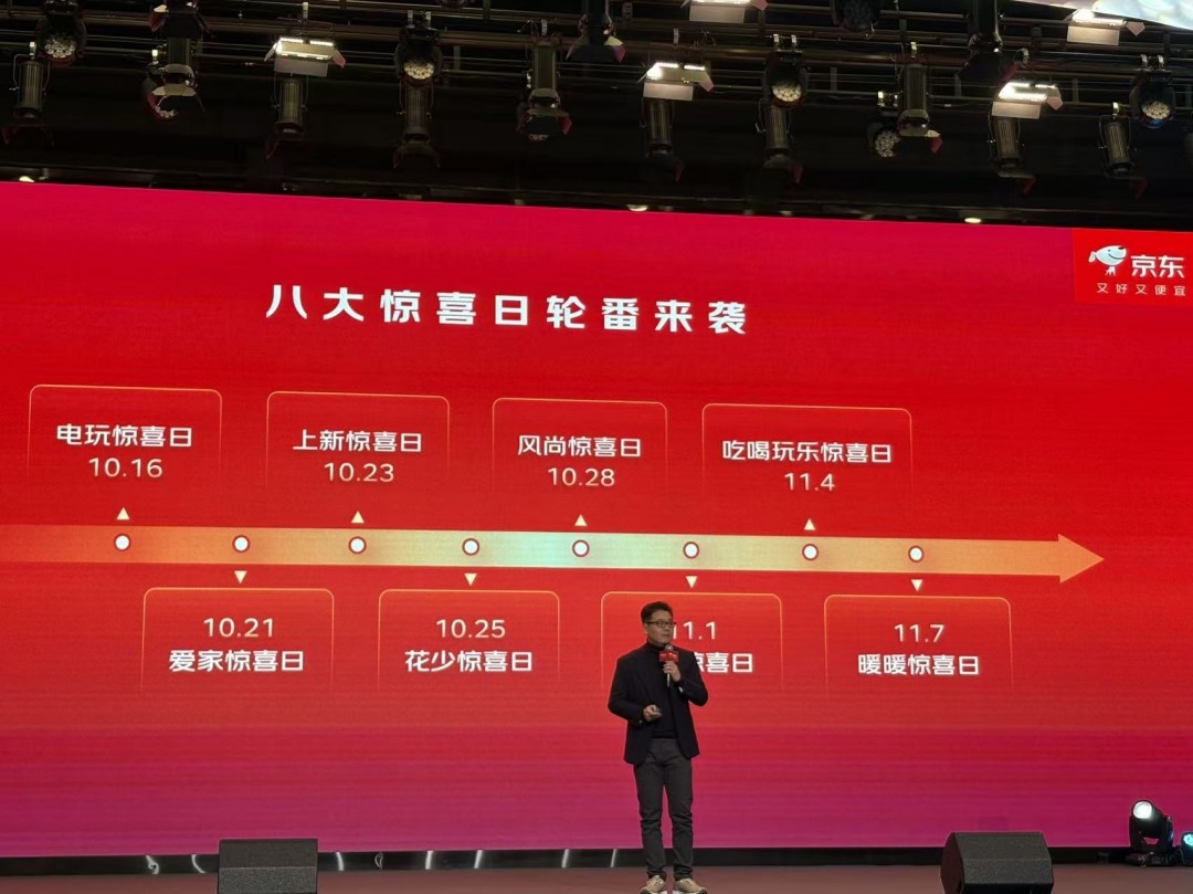 从 10 月 16 日起,京东 11.11 电玩惊喜日、爱家惊喜日、上新惊喜日、花少惊喜日、风尚惊喜日、球迷惊喜日、吃喝玩乐惊喜日、暖暖惊喜日共八大惊喜日将陆续推出。