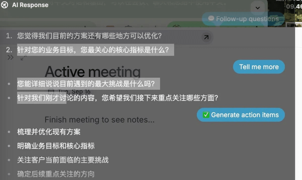 我们试过的 Cluely 的中文会议场景,提炼的也很精准