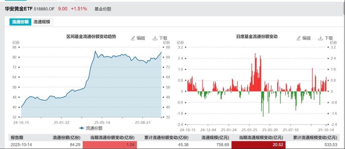 仅 8 月下旬以来,COMEX 黄金已经累计涨超 25%。黄金主题 ETF 的规模也迎来了量价齐升,接连创下新高。