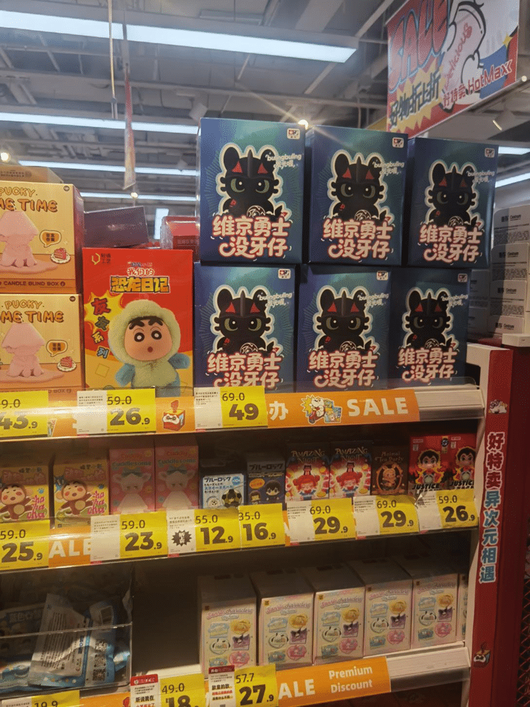 这种货架的变化,本质是一种 「坪效经营调整」——盲盒和谷子经济火,能带来更快的转化,自然加大引进;而传统零食和饮料,临期供应不太稳定,且还有直播电商、以及其它线下渠道分食,就会主动或被迫下架。