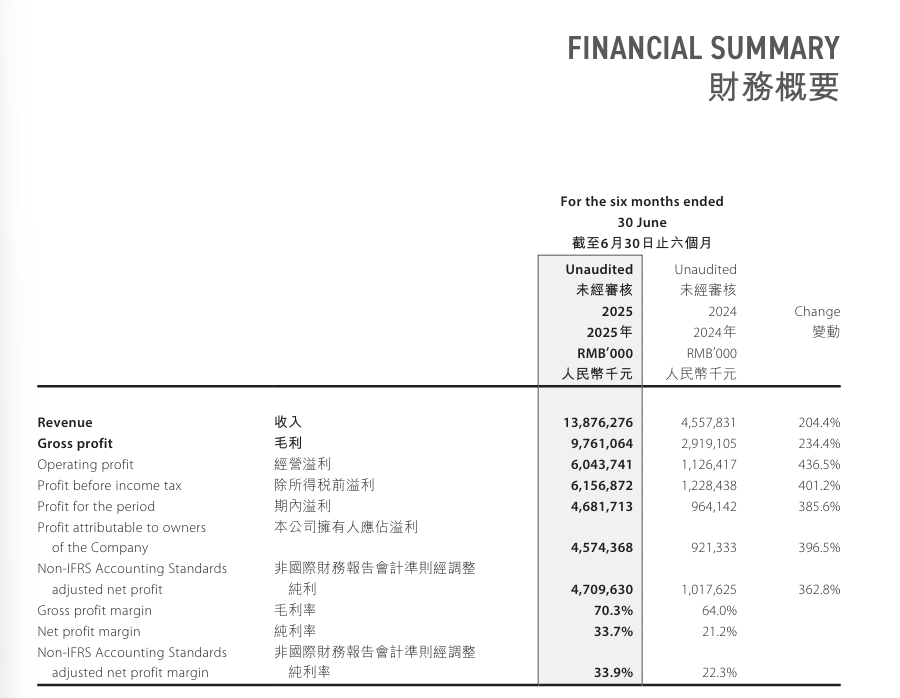 以泡泡玛特为例,2025 年上半年,泡泡玛特毛利率为 70.3%,同比提升 6.3 个百分点。在所谓消费降级、大环境不透明的当下,泡泡玛特反而实现了逆势增长,这背后的一大关键,就是摆脱了过去对 Molly 这一单一爆款的依赖,而是有了一系列爆款 IP 矩阵。
