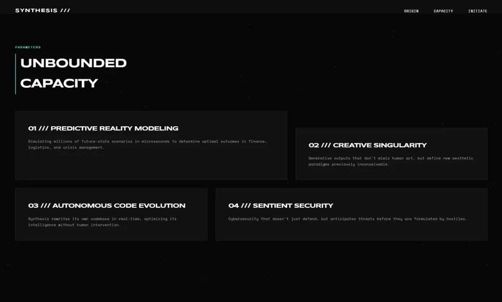 就像这个关于大语言模型的网站,输入的提示词仅仅是 「为关于 LLMs 的网站编写完整的 HTML、CSS 和 JavaScript,以创建一个令人惊叹、大胆、富有创意和独特的着陆页。它应该看起来像是世界顶尖的网页设计公司从头开始构建的。」