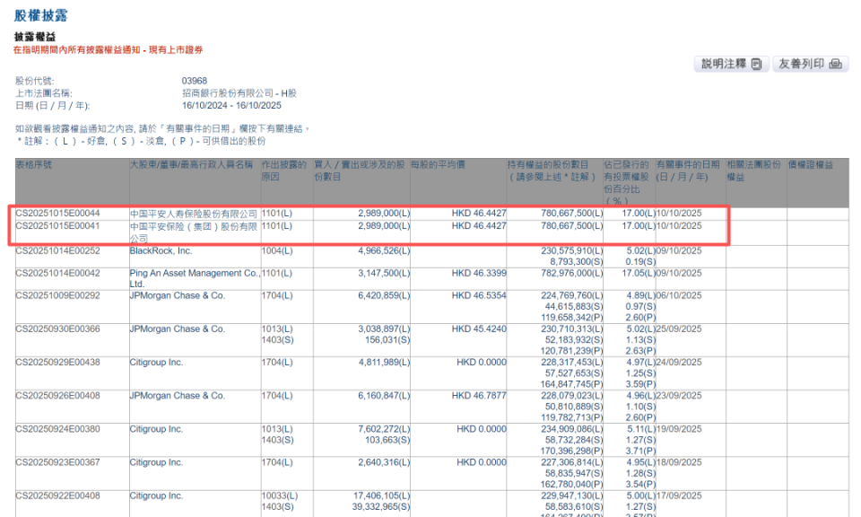 上海证券报记者近日统计发现,10 月以来,中国平安及旗下子公司平安人寿买入招商银行 H 股、邮储银行 H 股,合计斥资约 1.73 亿港元。