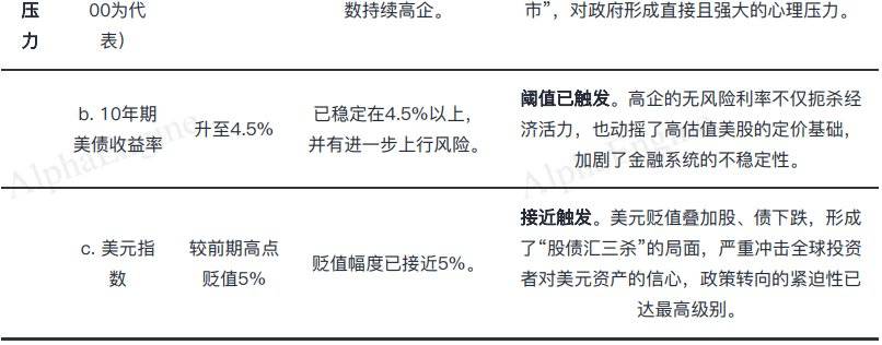 当这些维度的关键指标触及预设的 「痛苦阈值」 时,政策转向的可能性将急剧升高。