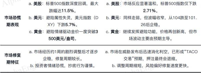 TACO 1.0 属于单一博弈。这个模式主要围绕单一的关税威胁展开,市场反应剧烈且迅速,通常在政策威胁后出现急跌,并在数日或一两周内快速修复,呈现出高波动、短周期的特征,典型代表是 2025 年 4 月的 「解放日关税」 事件。