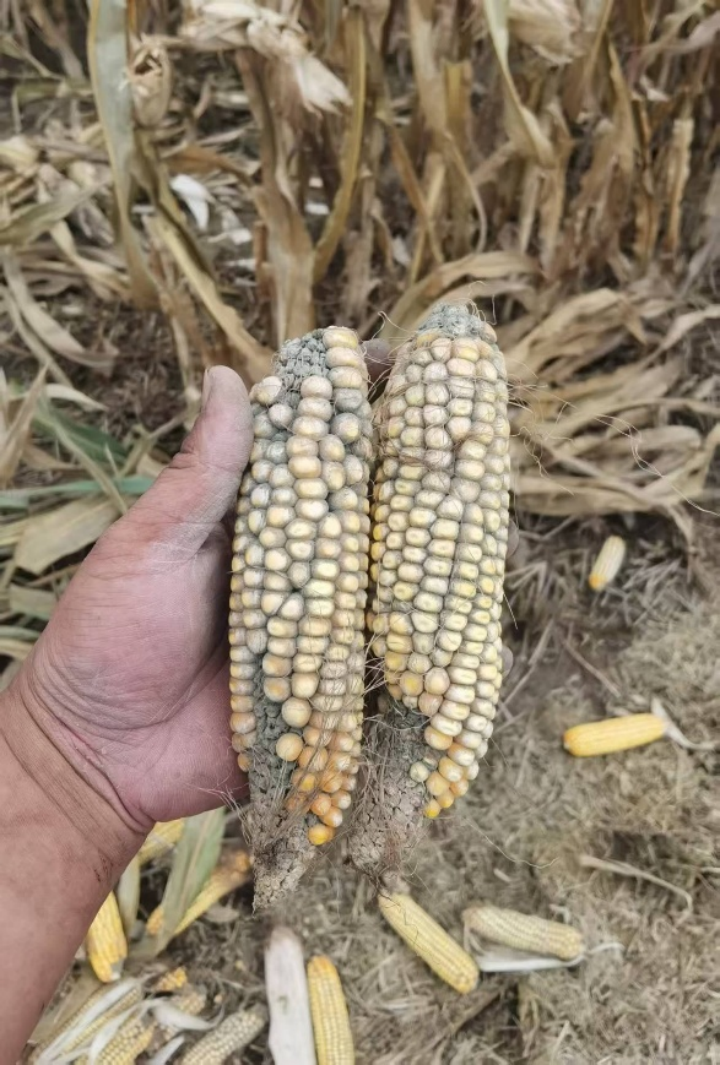 当玉米含水量超过 14% 时,就有霉菌生长的风险,含水量越高发霉速度越快,而今年部分玉米的含水量已经达到 40%。陈星宇估计,今年自家玉米的发霉率将近 70%。