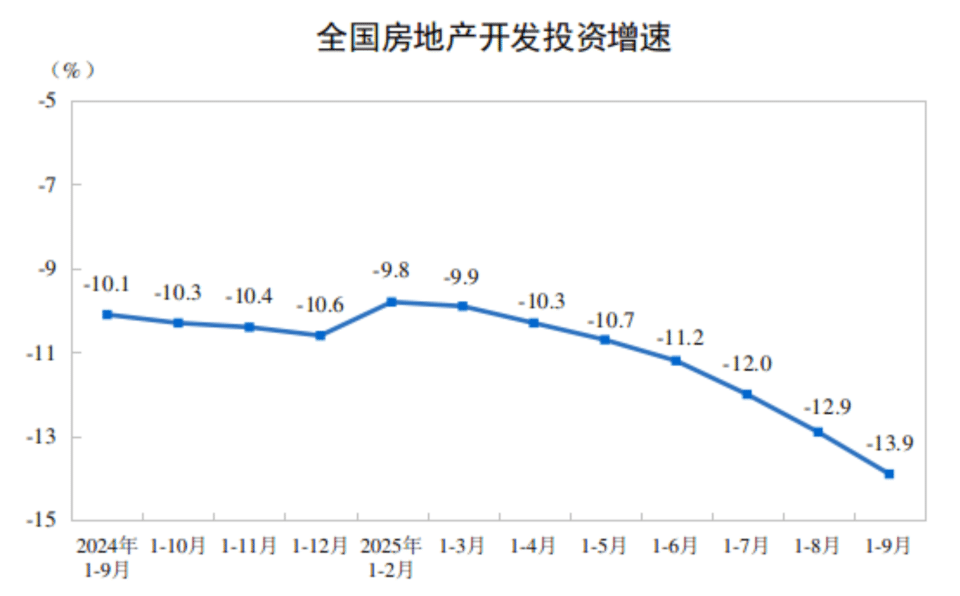 1—9 月全国房地产开发投资 67706 亿元 同比下降 13.9%