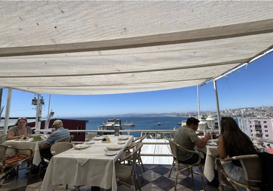 那天的午后阳光很好,我们在港口边的一家小餐厅吃了顿海鲜大餐——肥美的圣子螺、新鲜的贝类、热腾腾的 Mariscal,味道咸鲜丰富,带着冷洋流中才有的海味浓度。更不用说当地盛产的葡萄酒也为这顿纯海鲜增色不少。那一餐成为我们对瓦尔帕莱索最温暖的记忆之一。