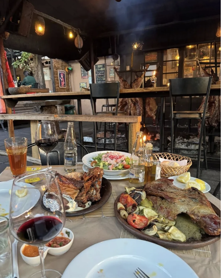 第一站是 La Dehesa 山下的一家烤羊餐厅。我们点了一份巴塔哥尼亚风味的烤羊排,肉质紧实,脂香浓郁,远胜我们在阿根廷或美国吃过的许多羊排。令人印象深刻的不只是菜品——侍应使用的英语几乎是母语水准,整个服务流程也非常职业。这家餐厅经常接待欧美的外国游客、企业高层和当地的比较富裕的家庭。
