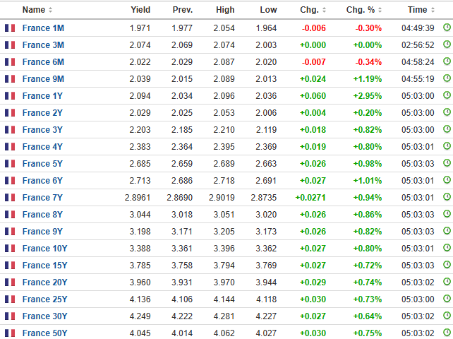 这一下调也导致周一法国债券收益率集体上涨,法国十年期国债利率目前为 3.388%,高出德国十年期国债利率近 80 个基点,远高于 2024 年法国提前投票前的不到 50 个基点,反映出投资者目前对法国债券的消极看法。