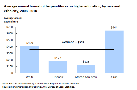根据美国劳工统计局的统计,亚裔美国家庭在 K-12 教育上的支出远超其他族裔,尤其是在辅导和娱乐课程等方面。
