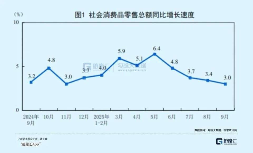 昨天官方发布了 9 月的宏观经济数据,跟消费相关的几个数据,比如社零,房价,还有之前发布的通胀数据,可以来看下。